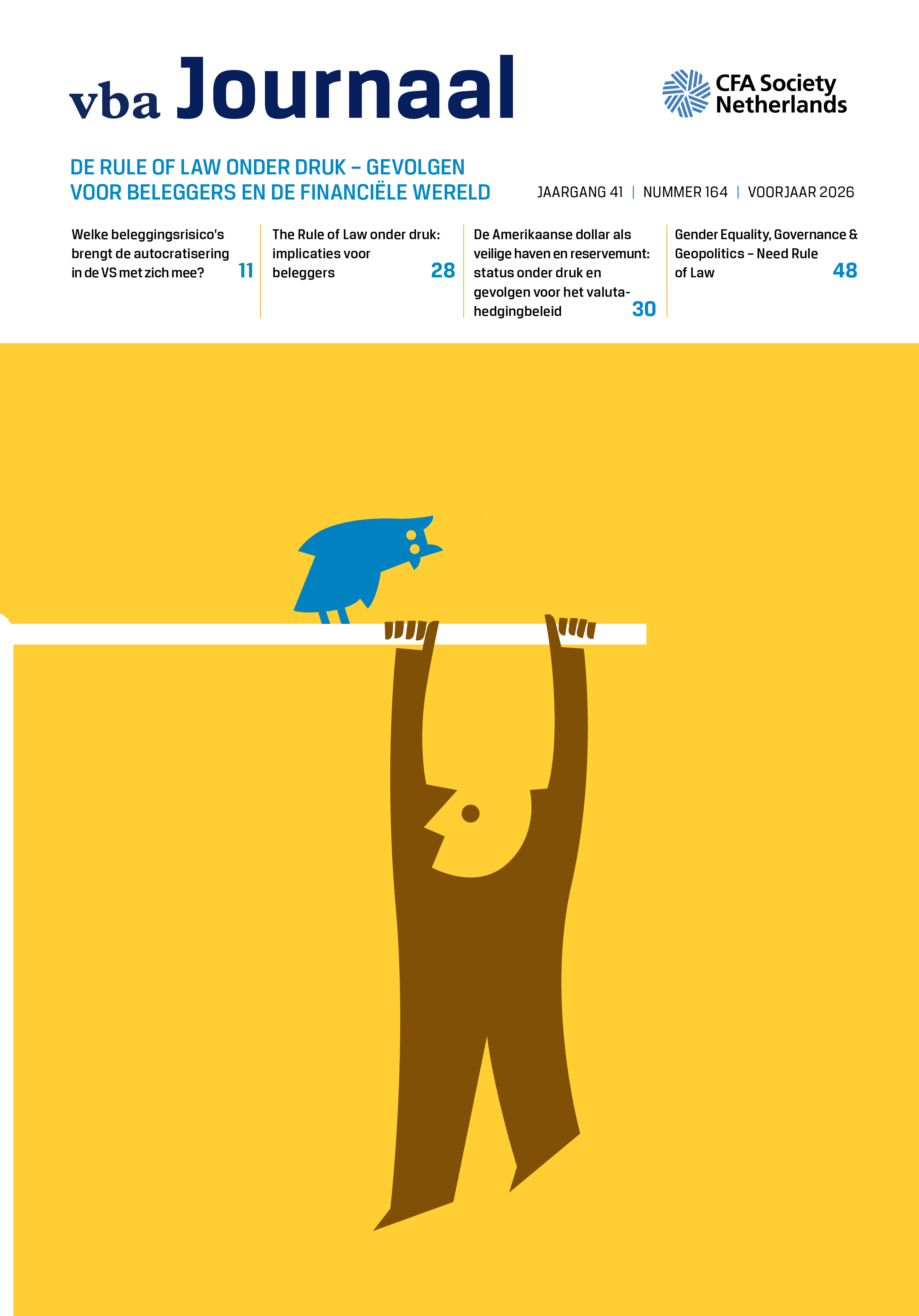 The VBA Journaal is a professional journal, published four times annually with a distribution of 2,300 copies to members of the society and interested stakeholders. VBA Journaal contains articles about relevant developments in the investment industry, practice-oriented articles, research and opinion. Each quarterly VBA Journaal is centered around a theme allowing broad and deep coverage of topics that influence our profession.